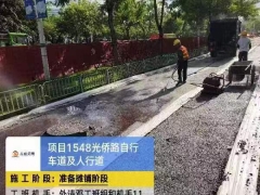 深圳市光明区光侨路自行车道人行道沥青摊铺施工